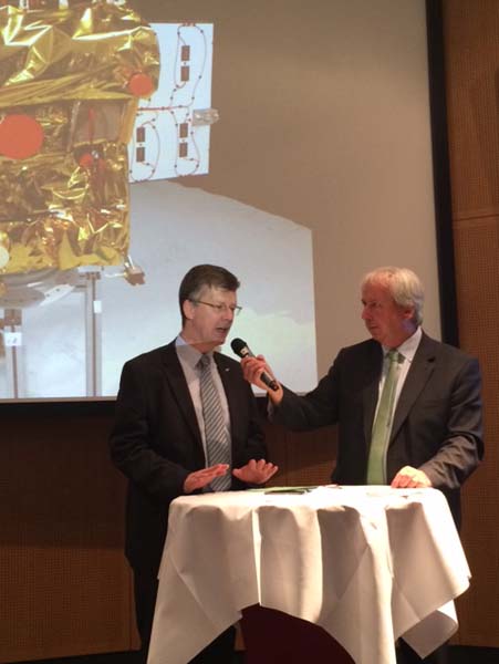 To mark the occasion, the Indian tricolor was also hoisted at the DLR entrance and about 100 persons including the Director of DLR Prof. Dr. Heinz- Wilhelm Huebners witnessed the launch event at the Berlin- Aldershof DLR centre. Prof. Dr. Huebers thanked the Indian Government and ISRO for the successful launch.
