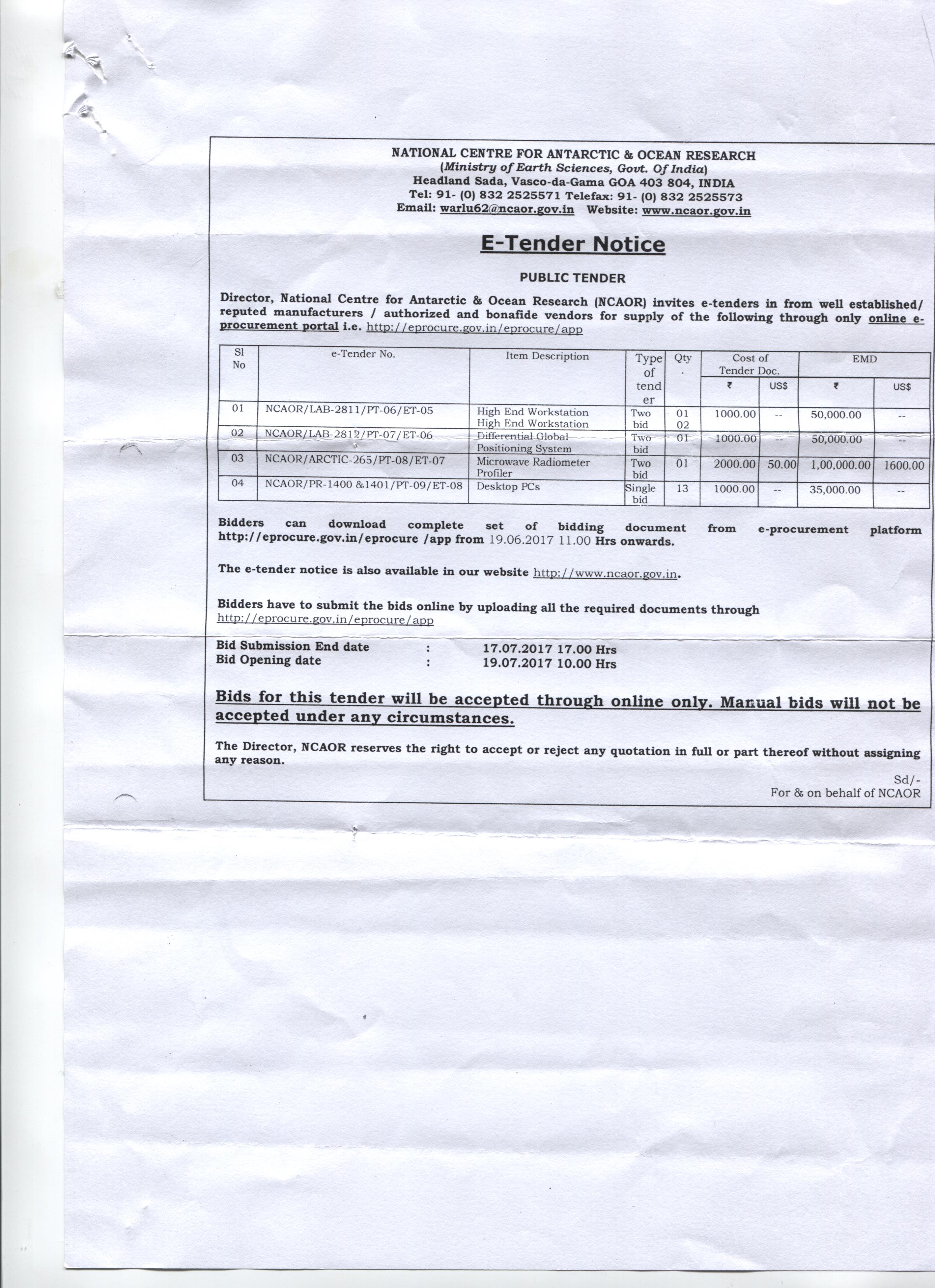 • Tender by India Meteorological Department: Procurement of AT/RH Sensors