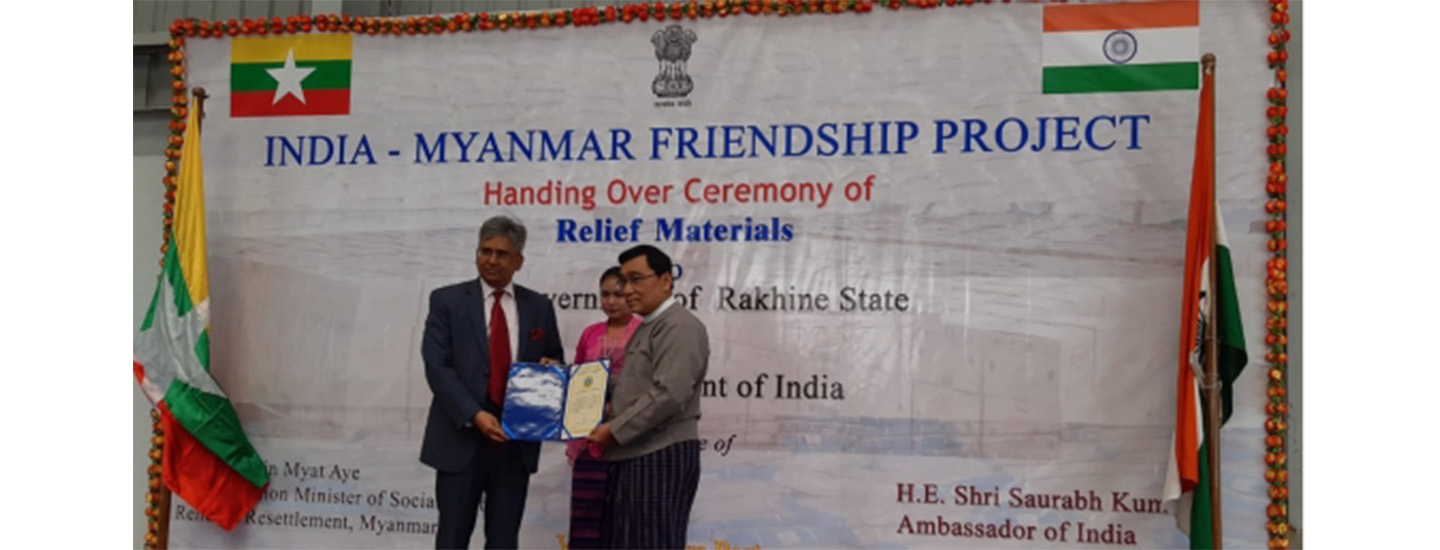 ||Handing over of Relief Material|| 20000 kits consisting of rice, rice noodles, pulses, cooking oil, tarpaulin etc were handed over. The assistance is part of Govt. of India's continued endeavor to support the socio-economic development of Rakhine State.-21st January, 2020