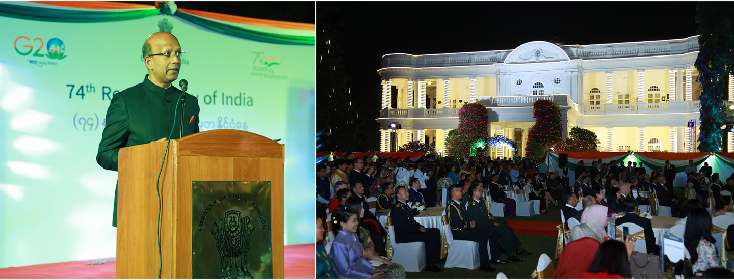 Embassy of India Yangon hosted a reception to mark the 74th Republic Day of India on 26 January 2023. Friends from Myanmar, members of Indian community, diplomats and media participated in the celebration.
