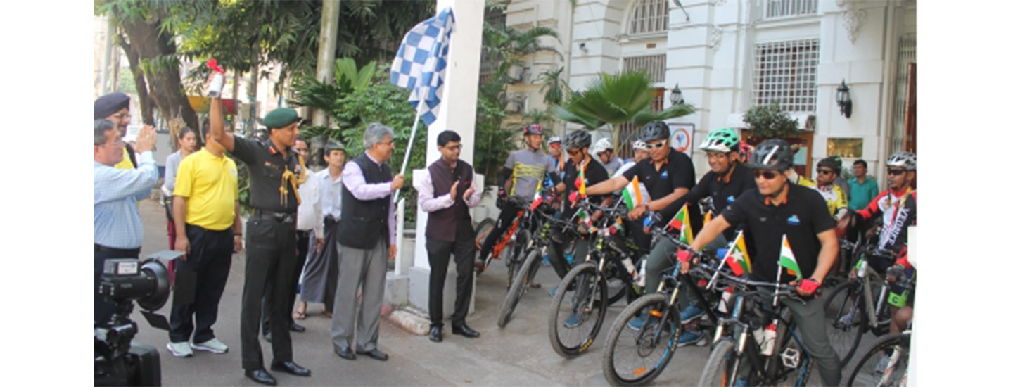 Ambassador Saurabh Kumar felicitated 4 member cycling team from National Institute of Mountaineering and Allied Sports @DirangNimas - at Embassy of India, Yangon. They are on a 4 country expedition to create awareness about
