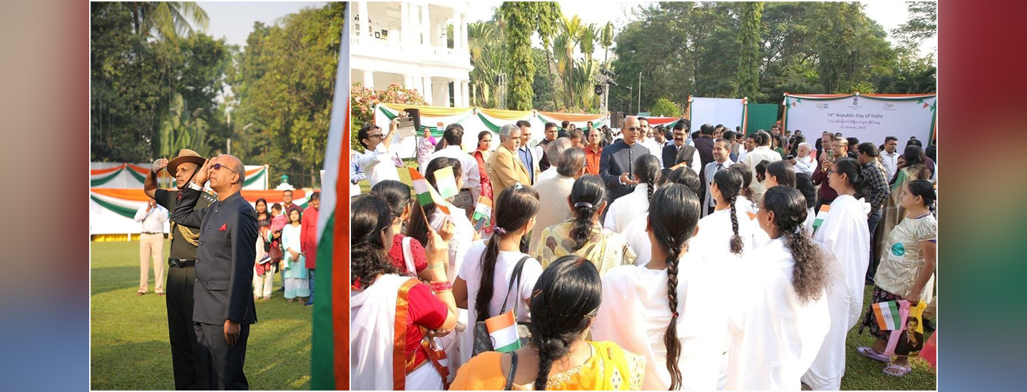 On the joyous occasion of India’s 74th Republic Day, Ambassador of India to Myanmar, H.E. Shri Vinay Kumar hoisted the tricolour at the India House and read Hon’ble Rashtrapatiji’s address to the nation. (26 January 2023)