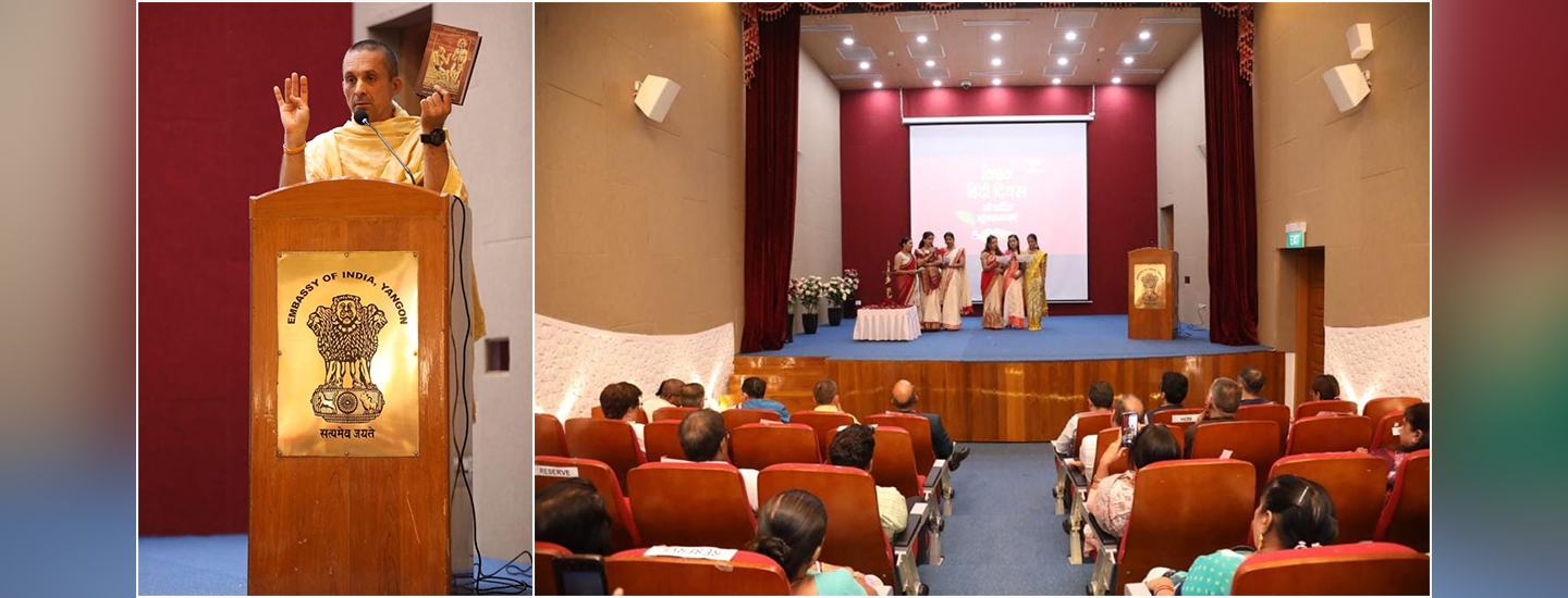 World Hindi Day was celebrated at India Center on 10th January 2023. Lecture on Srimad Bhagwat Geeta was given by ISKCON's Swami Patri Das. Students and teachers of Hindi language class organized by Embassy also organized a musical program in Hindi.