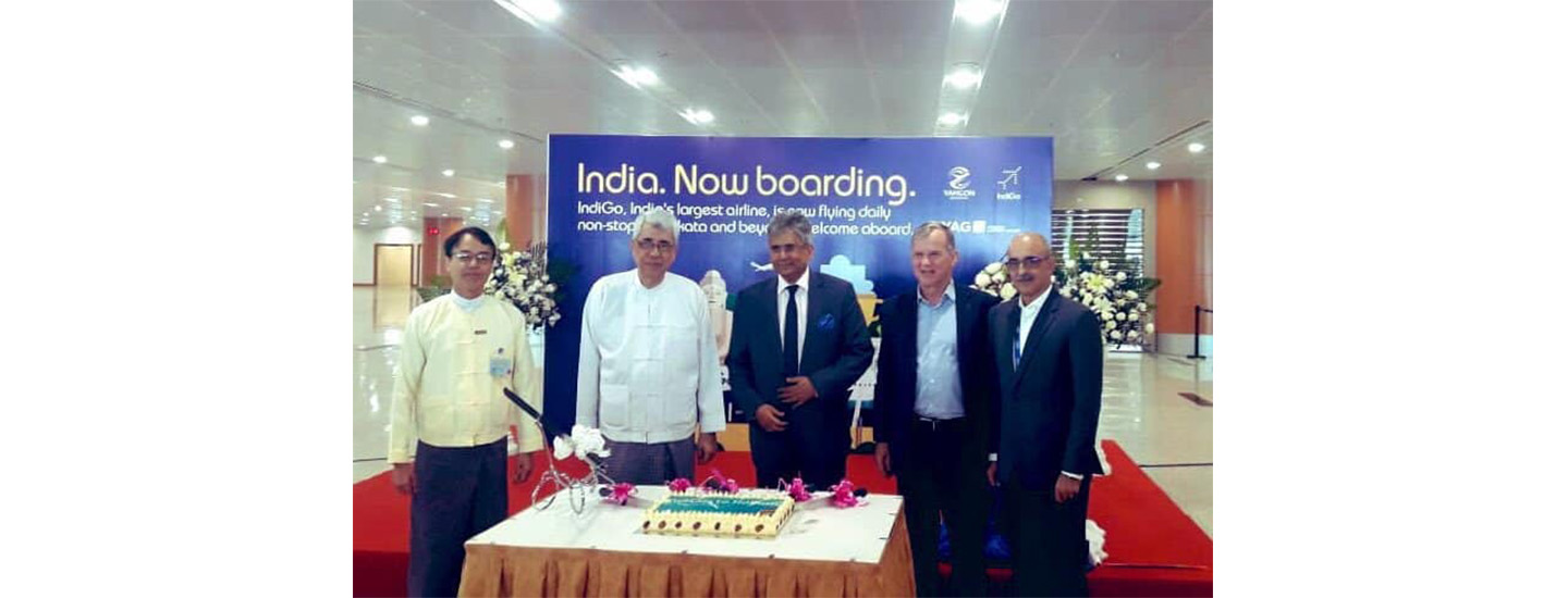 Ambassador Shri Saurabh Kumar along with Deputy Minister of Transport, H.E. Mr. Kyaw Myo and other dignitaries, inaugurated the Kolkata-Yangon-Kolkata Indigo flight (20th September, 2019)