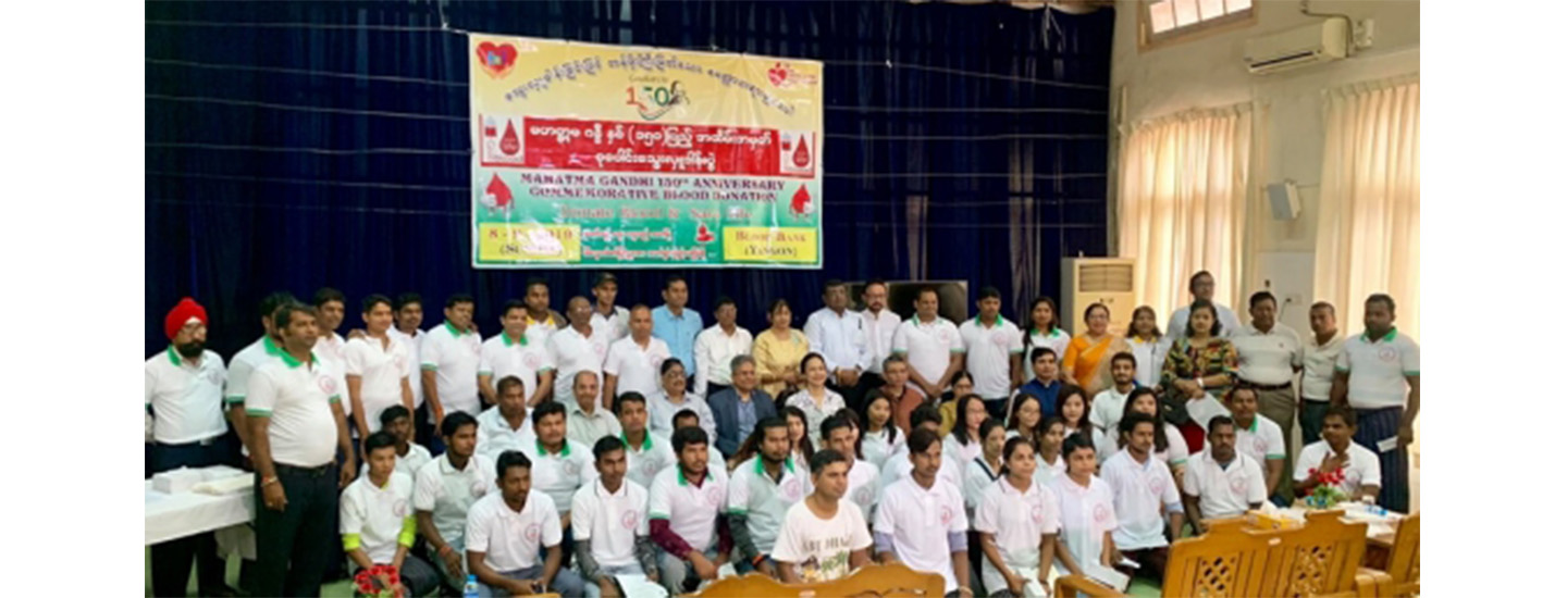 || Blood Donation Campaign || To pay tribute to Mahatma Gandhi on his 150th Birth Anniversary, a Blood donation camp was organized at National Blood Bank, Yangon. Amb. Shri Saurabh Kumar, Dr. Daw Thida Aung, DG of the national blood bank and 200+ blood donors participated in the event.(8th September, 2019)