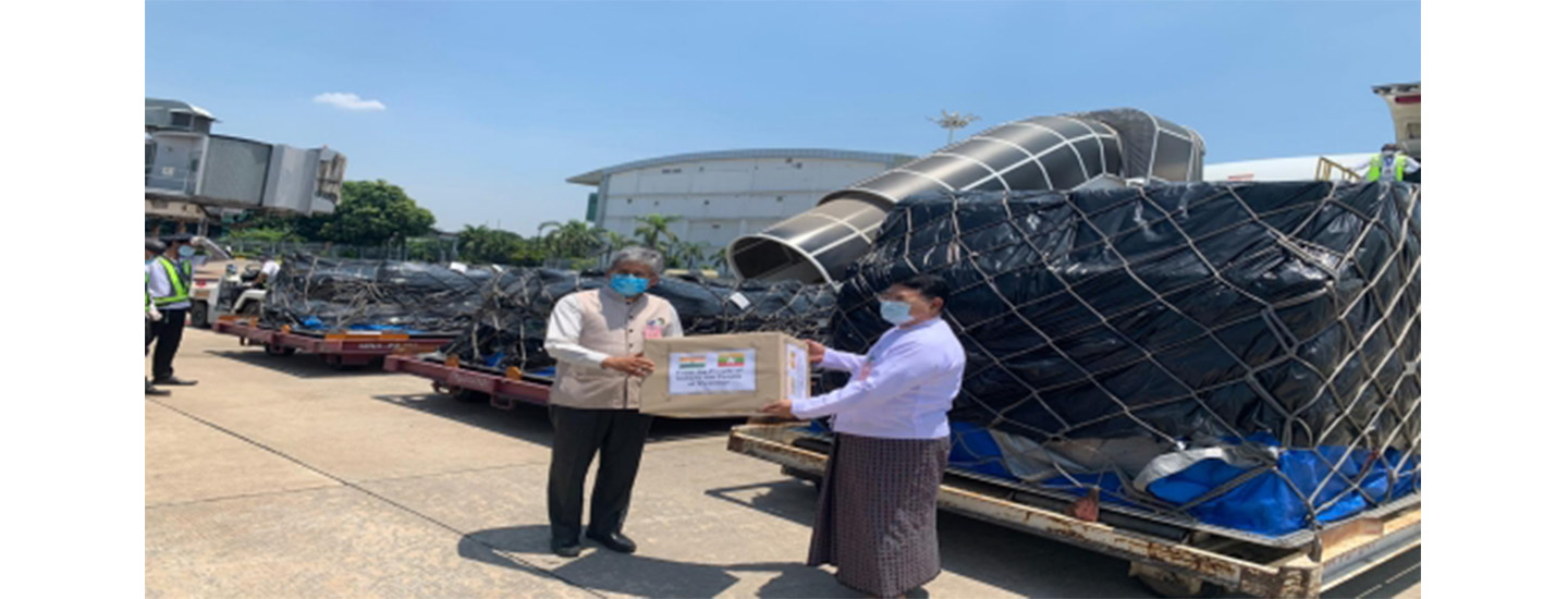 On behalf of the Government of India Ambassador Shri Saurabh Kumar handed over medical equipment, medicines, and other supplies to the Ministry of Health and Sports at Yangon Airport to support Myanmar’s Healthcare System.(5th May, 2020)