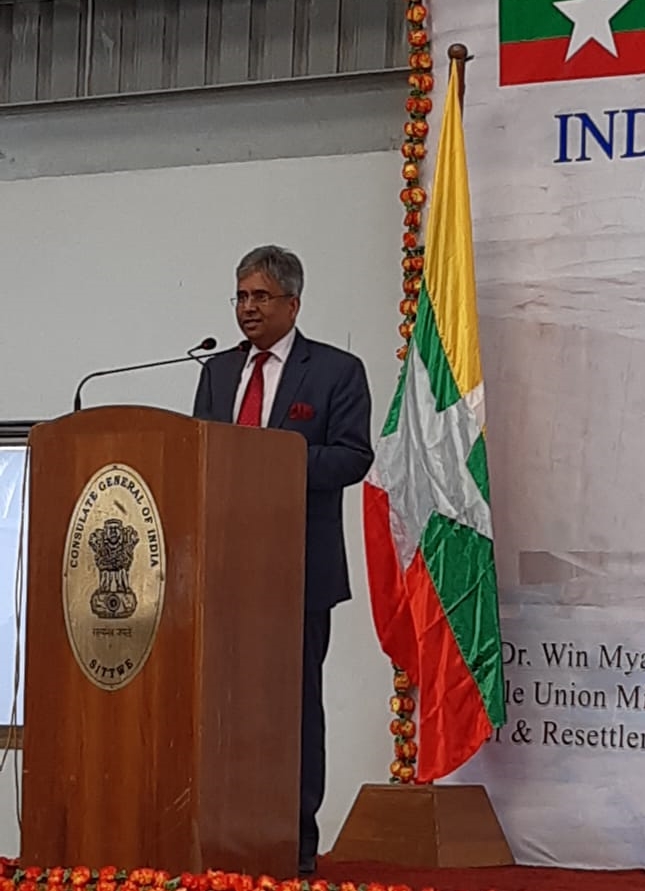 The Ambassador of India to Myanmar handed over to Rakhine State Government, Government of India’s relief assistance for the civilians of Rakhine State displaced as a consequence of ongoing conflict. The handing over ceremony was held at Sittwe on 21 January 2020 and attended amongst others by H.E. Dr Win Myat Aye, Union Minister for Ministry of Social Welfare, Relief and Resettlement, H.E. U Nyi Pu, the Chief Minister of Rakhine State, H.E. U Soe Aung, Deputy Minister, Ministry of Social Welfare, Relief and Resettlement, U San Kyaw Hla, Speaker of Rakhine State Parliament and Ambassador of India to Myanmar H.E. Shri. Saurabh Kumar. The relief material is valued at USD 235456 and consists of 20,000 kits consisting of Rice, Rice Noodles, Toor Dal, Chana Dal, Soya Oil, Chili Powder, Turmeric Powder, Cumin Powder, Coriander Powder, Salt and Tarpaulin.