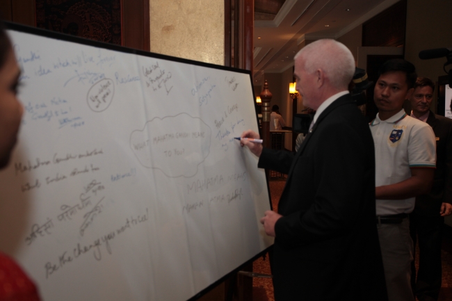 A two-year long celebration of the 150th birth anniversary of Mahatma Gandhi was launched by the Embassy of India in Yangon with an event on 2nd October held at the Sule Shangrila Hotel.