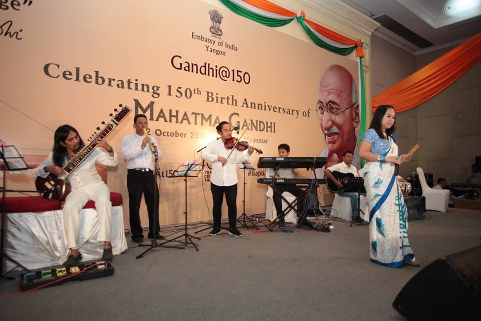 As a part of the celebrations, Mahatma Gandhi’s favourite Gujarati bhajan (a devotional song), “Vaishnav Jan To Tene Kahiye Je”, was sung by Ms May Thu Khine, along with the the popular Ugly Music Band from Myanmar. This bhajan was originally composed by Saint Narsinh Mehta in the 15th century. Mahatma Gandhi listened to this bhajan since his childhood and was deeply inspired by it.