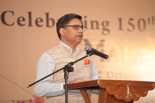 The welcome remarks at the event were delivered by Ambassador Vikram Misri, followed by words by Venerable Sitagu Sayadaw Dr. Ashin Nyanissara, who spoke about the life and work of Mahatma Gandhi.