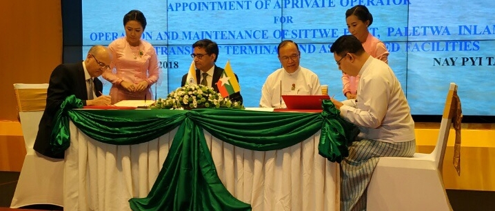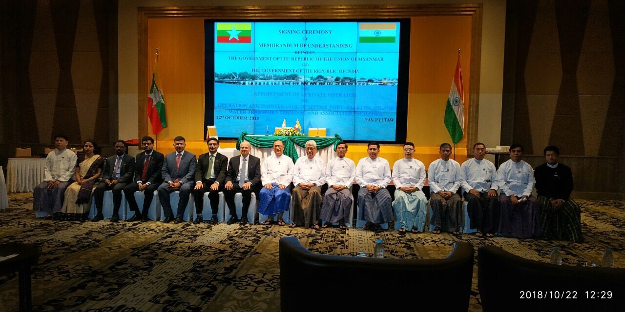 ထိုသို႔ေတြ႕ဆံုၾကျပီးေနာက္ အိႏၵိယႏိုင္ငံ ႏိုင္ငံျခားေရးအတြင္းဝန္ႏွင့္ ပုိ႔ေဆာင္ေရးႏွင္႔ ဆက္သြယ္ေရး ၀န္ၾကီးဌာန အျမဲတမ္းအတြင္း၀န္ ဦး၀င္းခန္႔တို႔က ကုလားတန္ျမစ္ေၾကာင္း ဘက္စံုသံုးျဖတ္သန္းသယ္ယူပုိ႔ေဆာင္ေရး စီမံကိန္းတြင္ ပါ၀င္ေသာ စစ္ေတြဆိပ္ကမ္း၊ပလက္၀ ျပည္တြင္းေရေၾကာင္းဆိပ္ကမ္းႏွင္႔ ဆက္စပ္ပစၥည္းမ်ား၊ အေဆာက္အအုံမ်ားအား စီမံခန္႔ခြဲျခင္းႏွင့္ ထိန္းသိမ္းျခင္းလုပ္ငန္းမ်ားအတြက္ Private Port Operator ေရြးခ်ယ္ခန္႔ထားေရး ဆုိင္ရာနားလည္ မႈစာခၽြန္လႊာကုိ လက္မွတ္ေရးထိုးၾကပါသည္။